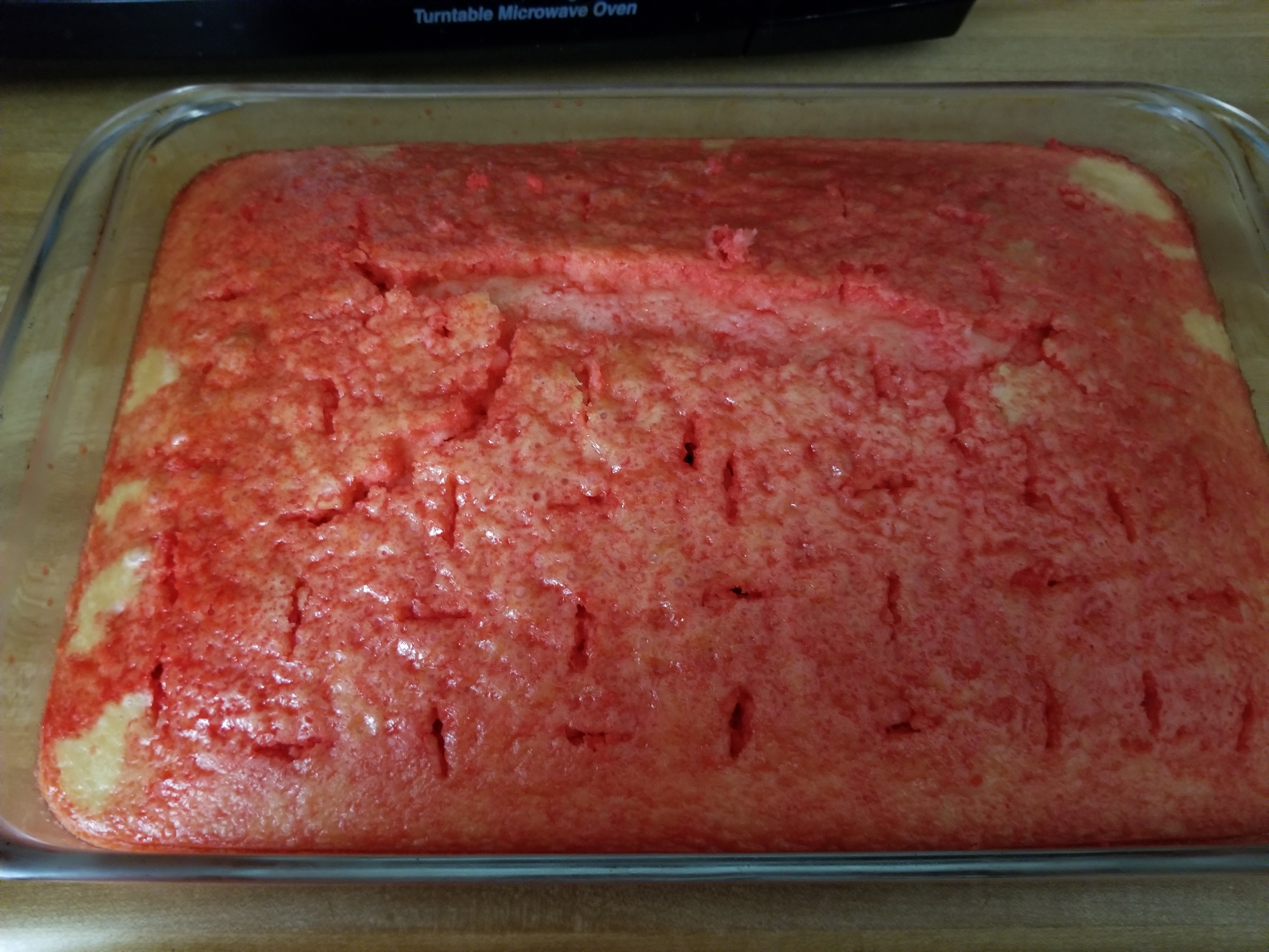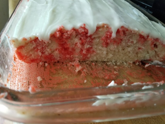 So moist and tender, I should have poured all the cherry jello stuff on top. I only did half because it seemed like a lot but it would have been better with all of it.