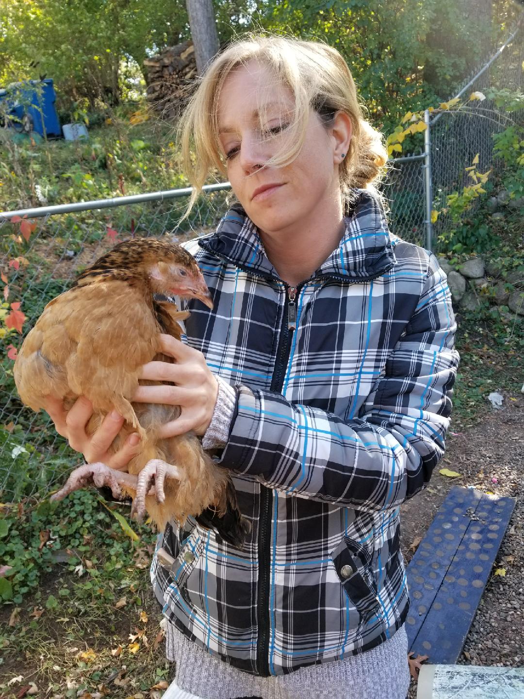 Here is a random picture of me with my new chicken, Dinner. She should lay me lots of eggs before fulfilling her name.