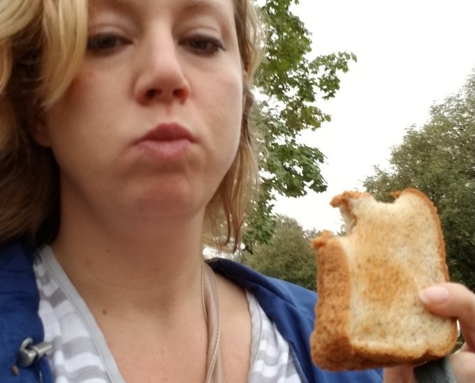 Also, here is a picture of me eating the toast Lover made for me when I was running late to work the other day. He’s the absolute best.