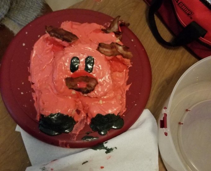 When your 3 year old asks for a pig cake (yes a pig cake…no fuckkng idea where she got that from but very clearly and definitely a pig cake) you make a pig cake.